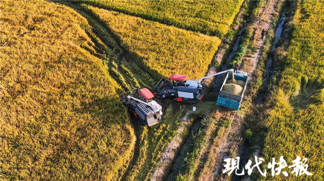 金色稻田機(jī)聲?。【淙萑f(wàn)畝良田開啟秋收大幕
