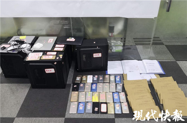 △ 警方查獲的電腦、手機(jī)等作案工具