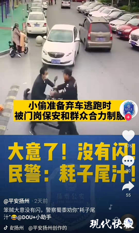 (通訊員 王晨煒 見習記者 莊劍翔)近日,揚州警方抖音號“平安揚州“發(fā)布的一段視頻戳中了網民們的笑點。視頻中,一名偷電動車電瓶得手的小偷在逃跑出小區(qū)途中撞上小區(qū)出入口的攔道器摔了下來。小偷爬起來后還想騎著車“開溜”,最終在棄車逃跑的過程中被一舉拿下。視頻配字:”大意了,沒有閃!民警:耗子尾汁“。11月22日,揚州公安局邗江分局公布了這一案情。