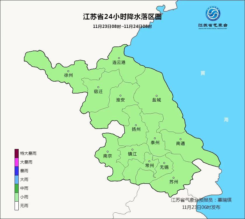 白天天氣陰沉,風力又比較大,氣溫回升得非常緩慢,南京最高氣溫在7℃到8℃左右,濕冷感明顯。根據(jù)預報,11月23日夜間徐州、宿遷還有望見到雨夾雪或雪。