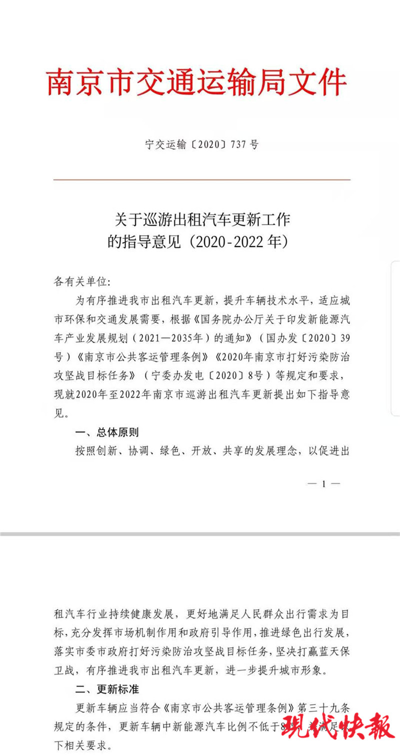 “國務(wù)院剛出了一個(gè)關(guān)于新能源車的產(chǎn)業(yè)規(guī)劃,為了響應(yīng)國家的號召和要求,正好出租車要更型了,考慮到環(huán)保的要求,我們出臺了這個(gè)指導(dǎo)意見,鼓勵(lì)大家更換新能源車。”南京市交通運(yùn)輸局相關(guān)負(fù)責(zé)人表示。