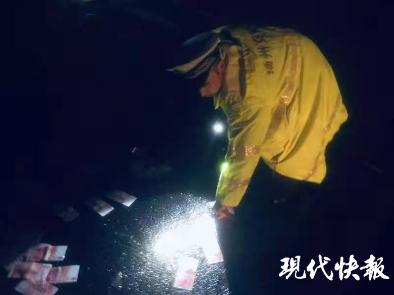 (通訊員 祝雋 李一言 記者 顧瀟)11月25日深夜揚州境內(nèi)風(fēng)大雨大,京滬高速揚州段發(fā)生一起交通事故,導(dǎo)致大量現(xiàn)金撒落在高速公路上。揚州交警趕到現(xiàn)場后,迅速封鎖了現(xiàn)場,冒雨幫助當(dāng)事人撿拾撒落的現(xiàn)金,最終幫當(dāng)事人找回了3萬多元。