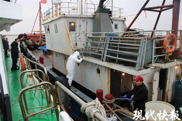 現(xiàn)代快報記者了解到,事發(fā)漁船停泊在距離射陽港口大約10海里的海面上。接到指令后,射陽縣漁政監(jiān)督大隊迅速啟動應急救援預案,出動中國漁政32528號執(zhí)法船前往漁船停泊海域展開救援。