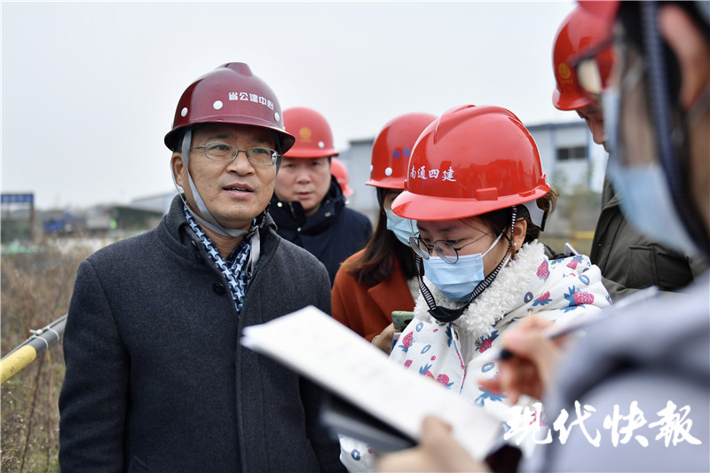 △南京市公共工程建設(shè)中心計(jì)劃處處長(zhǎng)王超介紹南京長(zhǎng)江五橋施工建設(shè)情況