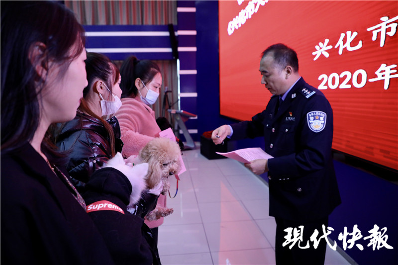 現(xiàn)代快報(bào)記者在現(xiàn)場(chǎng)看到,兩名興化市公安局工作人員正在對(duì)新進(jìn)的狗狗進(jìn)行拍照,并將相關(guān)信息錄入《興化市犬只登記管理信息系統(tǒng)》。據(jù)了解,今年11月20日,該系統(tǒng)正式上線,由興化公安主導(dǎo),城管、農(nóng)業(yè)農(nóng)村、衛(wèi)生健康等多部門(mén)參與,系統(tǒng)里狗的年齡、特征及狗主人的身份信息都能一覽無(wú)余。
