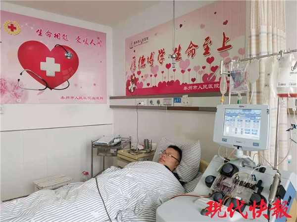 11月24日上午,揚(yáng)州儀征小伙張晨雨在泰州開(kāi)始造血干細(xì)胞的捐獻(xiàn)。陪伴在身旁的,是他的未婚妻王萌。
