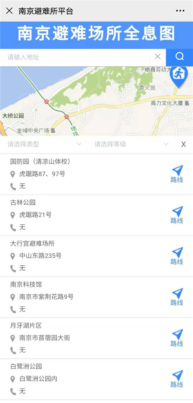 這么多應(yīng)急避難場所,如何查詢哪一處離你最近呢?記者了解到,市民可以關(guān)注“南京建設(shè)”微信公眾號,點擊右下角的“微服務(wù)”,選擇“應(yīng)急避難所”,就可以查詢到周邊的避難場所分布。