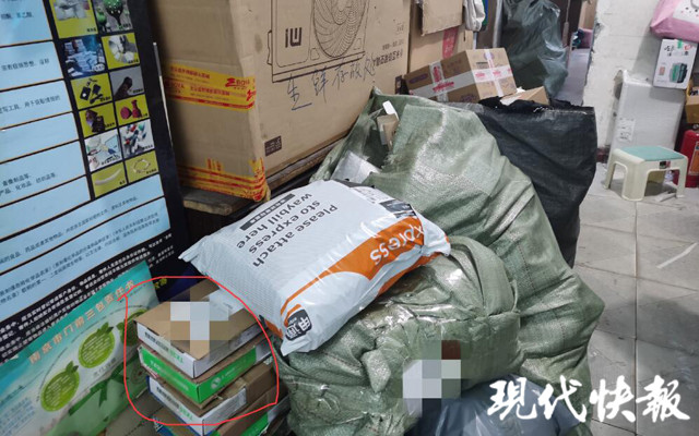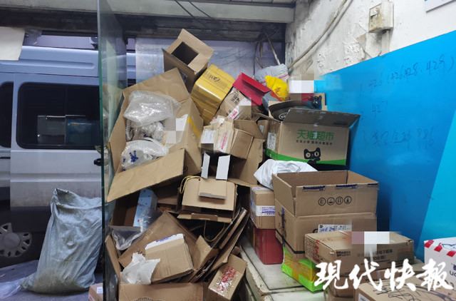 △南京一家快遞網(wǎng)點堆放的紙盒