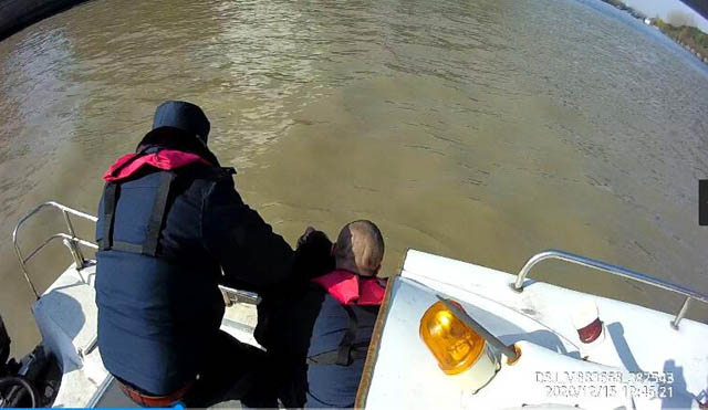 現(xiàn)代快報(bào)記者從常州交通部門了解到,12月15日中午,常州市交通運(yùn)輸綜合行政執(zhí)法支隊(duì)水上大隊(duì)二中隊(duì)執(zhí)法人員剛結(jié)束上午的巡航,正在吃著午飯。突然,從駐地邊上的村子里傳來(lái)一聲高喊:“快看,常金大橋上有人跳河!”話音剛落,一道黑色的人影快速越過(guò)護(hù)欄,墜入大運(yùn)河中。執(zhí)法人員扔下手中的盒飯,抓起救生衣套上,跳入摩托艇,調(diào)轉(zhuǎn)船頭直沖人員落水點(diǎn)。