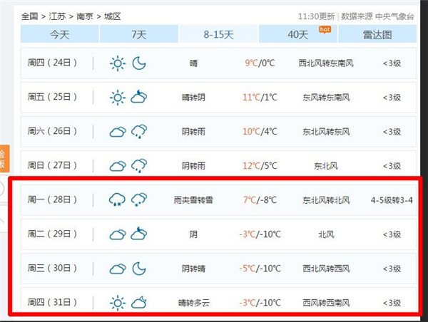 △ 中國天氣網(wǎng)8-15天預報里南京氣溫驟降明顯 網(wǎng)絡(luò)截圖