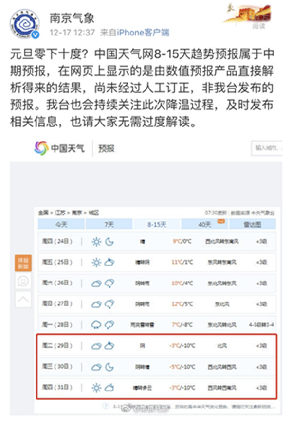 跨年南京只有零下10℃?官方回應(yīng):非正式發(fā)布