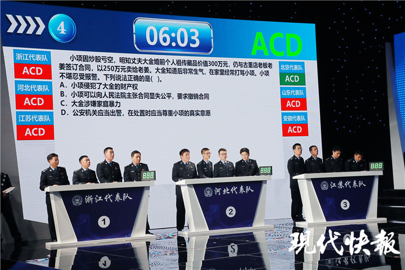 現(xiàn)代快報記者了解到,通過初賽選拔,全國公安機(jī)關(guān)32支代表隊成績排名前6的北京、江蘇、河北、安徽、浙江、山東代表隊進(jìn)入決賽。經(jīng)過決賽的激烈角逐,江蘇代表隊榮獲一等獎,安徽代表隊、北京代表隊榮獲二等獎,山東代表隊、河北代表隊、浙江代表隊榮獲三等獎。同時,評出優(yōu)秀組織獎和優(yōu)秀個人獎,并頒發(fā)獎匾。
