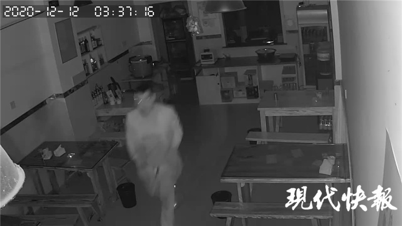 民警通過技術(shù)修復(fù),從視頻中獲取了線索。畫面顯示,事發(fā)當(dāng)天凌晨3時許,一名男子貓著腰走進(jìn)店內(nèi),在店內(nèi)翻找了一番,然后從收銀臺方向兩手托著東西往外,臨逃跑時男子抬頭看了看探頭,然后扯斷了電源線。