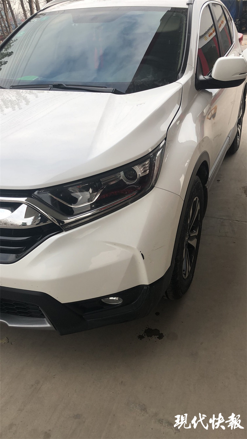 高某原本以為,顏色相近的牙膏和車漆可以“魚目混珠”,第二天便開車載著老板去張家港談生意了。沒想到他的這個“伎倆”,很快就被對方車主識破。12月21日下午1時許,白車車主,34歲的郭先生想開車離開酒店。啟動車子之前,他習(xí)慣性地繞車走了一圈觀察情況,結(jié)果發(fā)現(xiàn)車頭左前方顏色不太對。