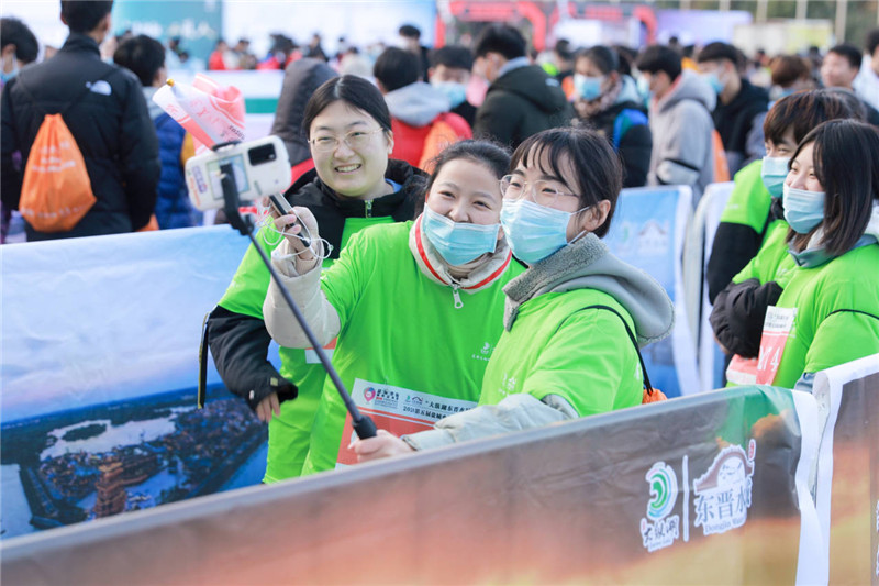 上午7點(diǎn)多,位于鹽都區(qū)鹽瀆街道的東方汽車(chē)廣場(chǎng)人聲鼎沸,選手們通過(guò)紅外測(cè)溫儀后,依次進(jìn)入集結(jié)互動(dòng)區(qū)。“太期待了!”雖然室外有些寒冷,但已年過(guò)六旬的劉錦森和夏桂芳夫婦興奮不已,夫妻倆在姓名墻上找到了自己的名字,開(kāi)心地讓隊(duì)友給他們拍照。