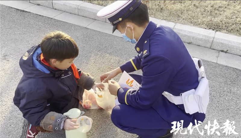 現(xiàn)代快報記者了解到,1月1日下午4點,泰州市海陵區(qū)消防救援大隊門口,一名小學生從電動車后座下來后,飛速跑向門口執(zhí)勤點。