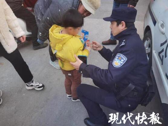 接報(bào)后,泰州市公安局姜堰分局三水派出所迅速趕到現(xiàn)場(chǎng),發(fā)現(xiàn)男孩穿著黃色小棉襖,看起來(lái)年齡只有三四歲。天氣寒冷加之受了驚嚇,男孩瑟瑟發(fā)抖,眼淚止不住地往下流。周圍群眾均表示不認(rèn)識(shí)該男孩,民警買來(lái)餅干等零食耐心安撫,并把他帶上警車取暖。