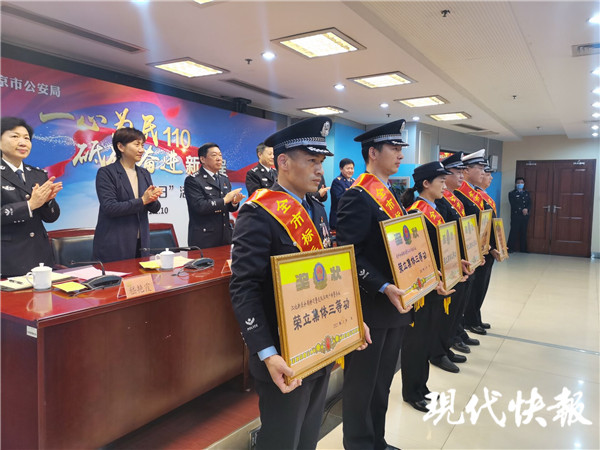 當天,南京市公安局還對全局110接處警工作成績突出的集體和個人進行了表彰,共有1個全國110工作成績突出集體,10個全市優(yōu)秀110集體、20名全市優(yōu)秀110接處警民警、20名全市優(yōu)秀110接處警輔警受到表彰。