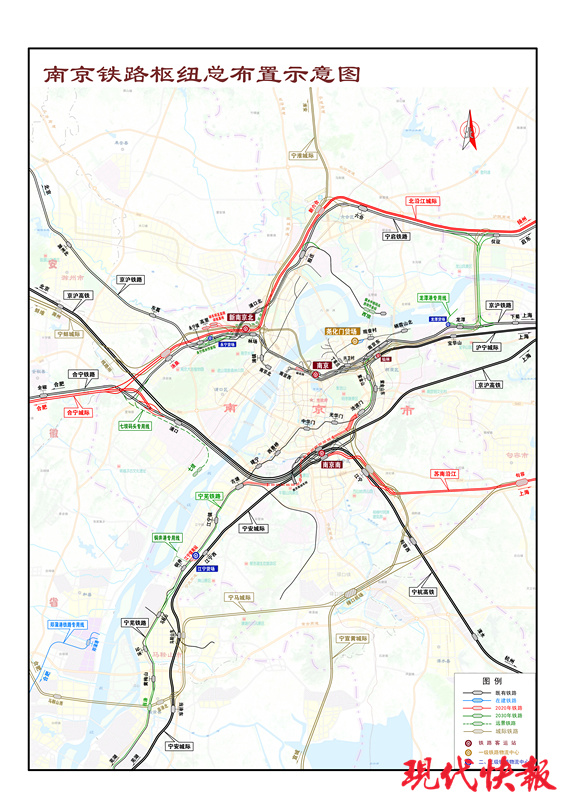 “十三五”期間,南京交通部門研究推動《南京鐵路樞紐總圖規(guī)劃(2016-2030)》批復(fù),南京鐵路樞紐將形成“兩環(huán)、八射、十五線”的環(huán)+放射“米”字型高鐵網(wǎng)格局,環(huán)線上布設(shè)南京北站、南京站、南京南站三大主客站。