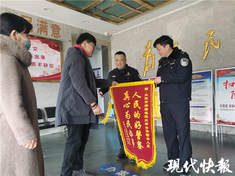 看到失而復(fù)得的黃金首飾,郭女士頓時(shí)激動(dòng)不已,連聲向民警道謝。1月12日上午,郭女士和家人特意制作一面錦旗送到橫塘派出所,對(duì)民警快速追回被“賣”掉的金器表示感謝。
