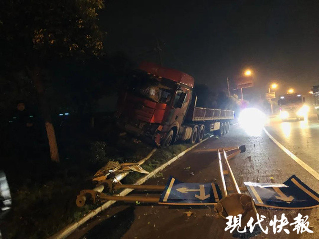 無獨(dú)有偶,就在10分鐘后,發(fā)生了類似事故,一輛重型半掛牽引車撞上綠化帶,撞倒交通指示牌。駕駛員馬某輝表示前一天都在開車,一直開到5日凌晨,中途也沒時(shí)間休息。在行駛至岱山墓園信號(hào)燈路口時(shí),本來是想踩剎車,結(jié)果踩上油門,一頭撞上綠化帶。所幸車輛在撞到綠化帶上的警示標(biāo)志牌后停下,不然后果不堪設(shè)想。