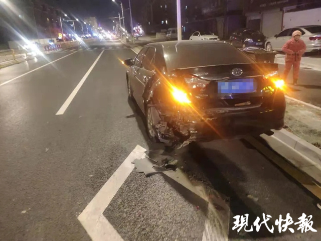 1月7日晚8點(diǎn)20分左右,姜堰交警城區(qū)一中隊(duì)接到群眾報(bào)警,淮海路某浴室門口有一起逃逸事故。接警后,民警迅速趕到現(xiàn)場(chǎng),發(fā)現(xiàn)地上滿是車輛碎片,被撞的黑色轎車左后側(cè)嚴(yán)重?fù)p毀。