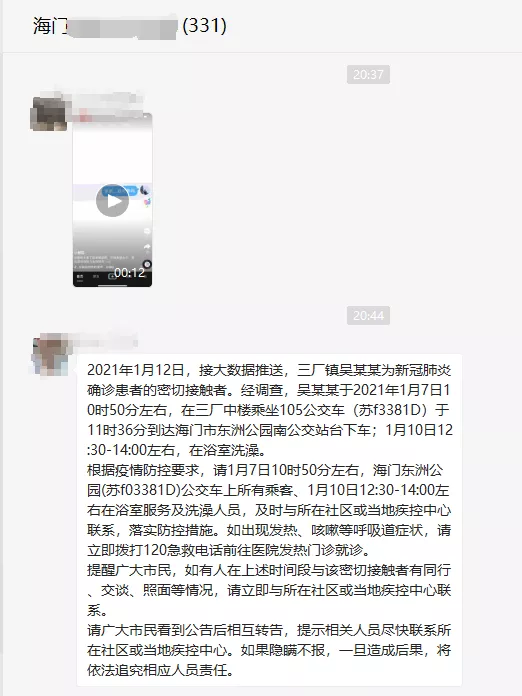據(jù)39歲的海門男子陶某交代,1月15日下午,他在網(wǎng)上看到了泰州姜堰區(qū)發(fā)布的一條《關(guān)于緊急尋找密切接觸者的密切接觸人員的公告》,故意把這條消息改編后,轉(zhuǎn)發(fā)給了朋友張某。