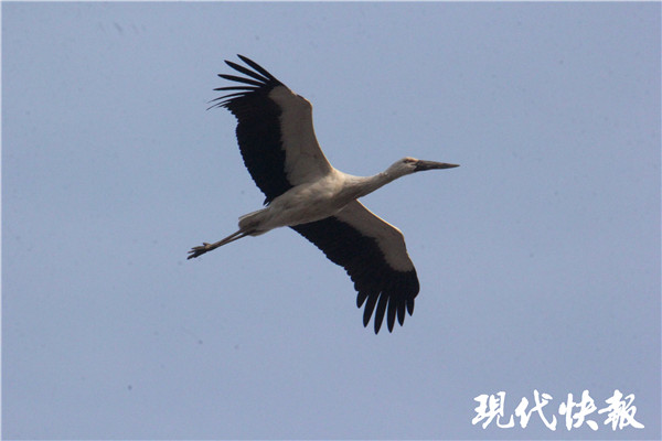 據(jù)南京野鳥保護協(xié)會護鳥志愿者武先生稱,當時看到東方白鸛在空中盤旋時,他都驚呆了。“沒想到一次能見到40多只東方白鸛,它們有著長長的嘴巴,通體雪白,只有翅膀邊緣和下側(cè)是黑色,外形很像傳說中的仙鶴。”