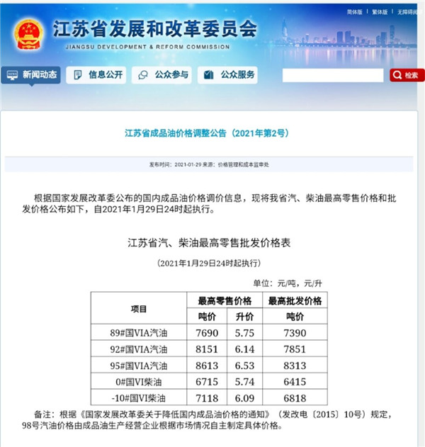根據(jù)江蘇省發(fā)改委的調(diào)價(jià)通知,江蘇92號(hào)汽油6.14元/升,95號(hào)汽油6.53元/升,0號(hào)柴油5.74元/升。據(jù)悉,本次調(diào)價(jià)是進(jìn)入2021年后的第二次上調(diào),也是現(xiàn)行調(diào)價(jià)機(jī)制自2013年春天執(zhí)行以來(lái),油價(jià)歷史性的完成了“六連漲”。截至本次調(diào)價(jià),2021年國(guó)內(nèi)成品油零售價(jià)共上調(diào)兩次,汽柴油零售價(jià)每噸累計(jì)上調(diào)260元/噸、250元/噸。