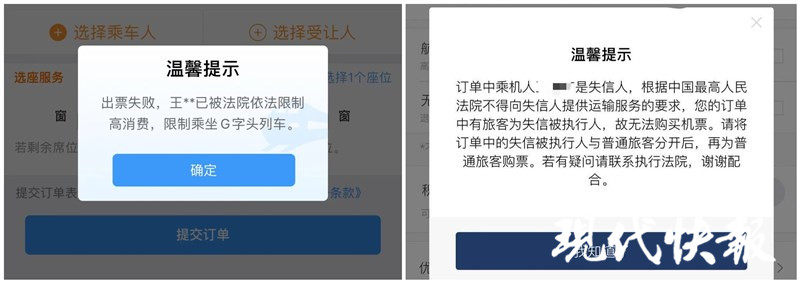 △記者確認(rèn) 該失信人員無(wú)法購(gòu)買(mǎi)機(jī)票、高鐵票