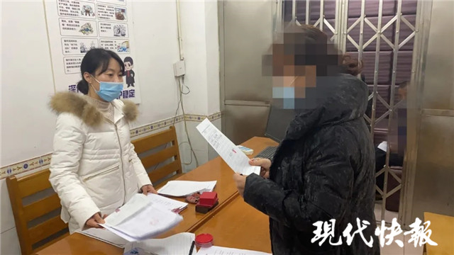 △陳某妻子(右)向法院遞交悔過書 通訊員供圖