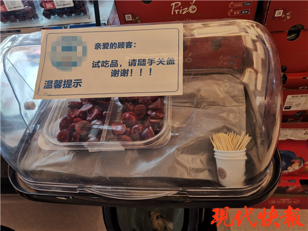 記者注意到,部分車?yán)遄颖磺谐尚K放在盒子內(nèi)里供試吃,路過的市民都戴著口罩,幾乎沒有人品嘗。