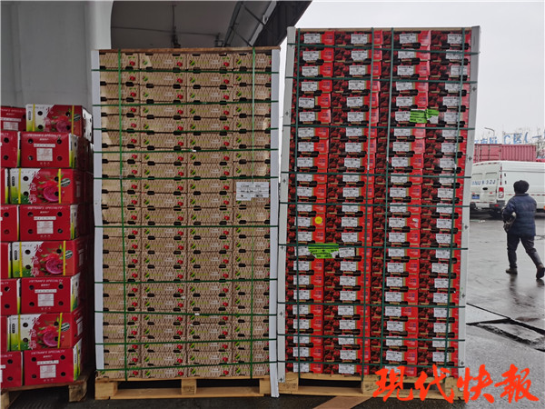 (記者 盧河燕 呂潔 文/攝)近日,車?yán)遄觾?nèi)表面核酸檢測呈陽性消息多發(fā),多地出現(xiàn)銷量下滑、價(jià)格跳水的現(xiàn)象。進(jìn)口水果價(jià)格如何?還能放心吃嗎?2月1日,現(xiàn)代快報(bào)記者兵分多路,探訪南京眾彩農(nóng)副物流批發(fā)中心(以下簡稱“眾彩”)和多家水果零售商超。多名商戶表示,每一批進(jìn)口水果都有相應(yīng)的核酸檢測報(bào)告。“車?yán)遄雨栃?rdquo;出現(xiàn)后,價(jià)格和銷量均出現(xiàn)攔腰斬,這樣的情況維持了三四天。目前人氣較高的2J車?yán)遄优l(fā)價(jià)為16-18元/斤,價(jià)格約同期一半。