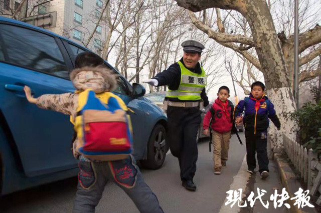 南京地鐵三、四號線開通后,學(xué)校周邊交通路況發(fā)生了改變,車輛無法靠邊???,孫巍總是搶在紅綠燈前讓接送孩子的車輛提前停車,自己小跑幾十米完成孩子的“交接”護(hù)送。