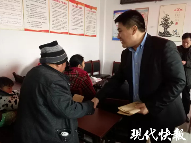 △ 曹電成利用春節(jié)慰問(wèn)家鄉(xiāng)的困難戶