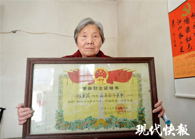 隨后,彭偉來(lái)到了劉月清老人家中。2019年,劉月清老人遷戶(hù)口提交材料時(shí),無(wú)意中提到了自己的烈屬身份,之后,竹西街道工作人員的一次走訪(fǎng)也印證了老人的說(shuō)法。她是劉重民烈士的外孫女兒,這個(gè)秘密,老人保守了幾十年。劉重民原名劉盛寶,江都仙女鎮(zhèn)雙溝大劉莊人。1927年,時(shí)任國(guó)民黨江蘇省黨部執(zhí)行委員、工人部長(zhǎng)兼秘書(shū)長(zhǎng)的劉重民等10人在南京被反動(dòng)派秘密抓捕。在嚴(yán)刑拷打面前,他英勇不屈,被秘密殺害。劉重民結(jié)婚后,因?yàn)闆](méi)有兒女,便過(guò)繼了姐姐的孩子,也就是劉月清的母親,作為養(yǎng)女撫養(yǎng),疼愛(ài)有加。