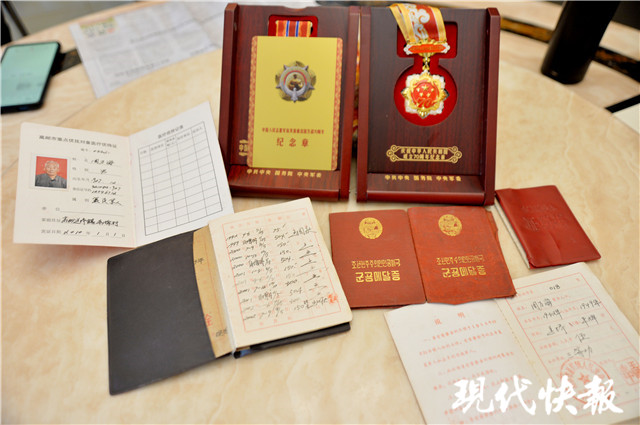 在周老家中,還保存著抗美援朝紀(jì)念章,以及朝鮮頒發(fā)的軍功獲獎(jiǎng)證。彭偉詳細(xì)記錄了周老口述的經(jīng)歷,并為紀(jì)念章、證書(shū)拍了照。