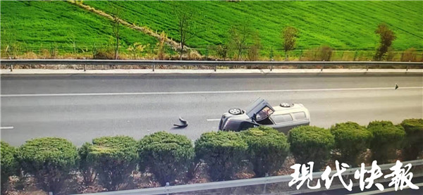 當(dāng)天下午4點(diǎn)多,徐州交警高速四大隊(duì)執(zhí)勤民警接指揮室指令稱,淮徐高速淮安方向K144公里處,一面包車側(cè)翻在快車道。民警迅速趕到現(xiàn)場(chǎng),發(fā)現(xiàn)事故車輛爆胎側(cè)翻在快車道,所幸沒(méi)造成二次事故,也沒(méi)有人員傷亡。