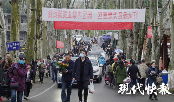 上午九點,現(xiàn)代快報記者來到南京雨花功德園看到,進入園區(qū)的道路兩旁,有10余家商販在售賣鮮花、絹花、盆花。往年售賣的紙錢等祭祀用品沒有了。來祭掃的市民也都是手捧鮮花。