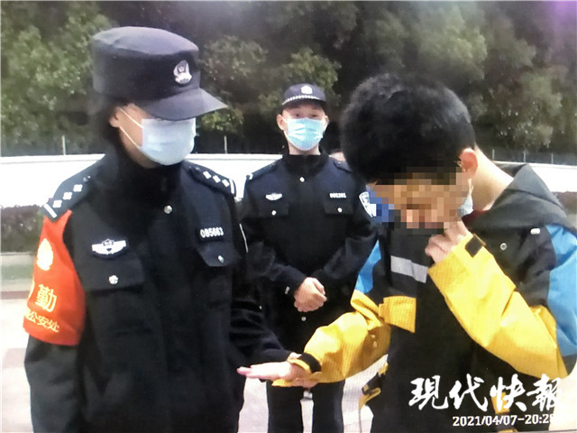 當(dāng)日19時(shí)許,C3870次列車列車長(zhǎng)將一名17歲的男孩移交給了揚(yáng)州站派出所。這名男孩不肯透露信息,一直用手遮擋面部,動(dòng)作神情非?;艔垺C窬托牡貙?duì)他進(jìn)行安撫,男孩的緊張情緒得到了緩解。
