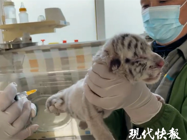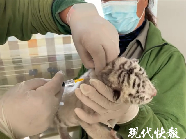 據(jù)南通森林野生動(dòng)物園工作人員介紹,四只小白虎在園內(nèi)出生,因?yàn)榘谆寢尩谝淮紊a(chǎn),沒有哺育經(jīng)驗(yàn),四個(gè)小兄弟就被媽媽“遺棄”。工作人員把四兄弟送往育幼室,進(jìn)行人工育幼。本次疫苗接種是為了預(yù)防小白虎剛出生時(shí)抵抗力差,外界可能會(huì)給它們帶來(lái)的炎癥。