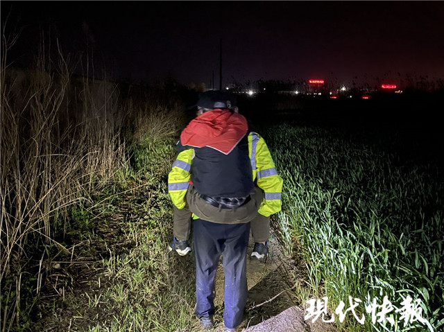 “田里的莊稼有半人高,還有小河阻隔。”臨近深夜12點,民警、輔警們的喉嚨都喊得有些沙啞,每個人鞋子濕透、半腿泥巴。正在這時,大家聽到微弱的救命聲,帶隊的城北派出所副所長胡旭偉立即循聲找去,撥開半人高的莊稼,大家看到一個瘦弱的老人陷在泥濘的麥田里,渾身濕透,凍得瑟瑟發(fā)抖。