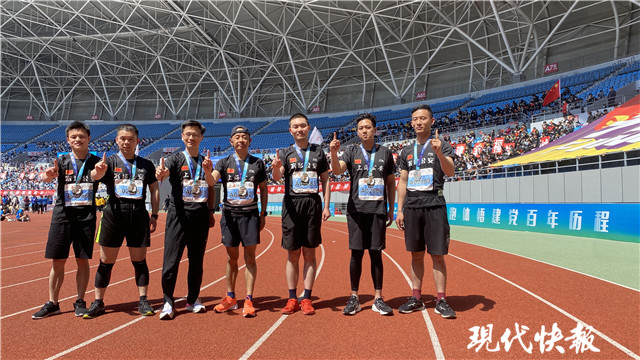 現(xiàn)代快報(bào)記者注意到,在半程馬拉松比賽的終點(diǎn),7名剛剛完成比賽的外地跑友異常興奮。面對(duì)鏡頭,他們一起用山東話、云南話、安徽話、蘇北話等不同的口音,共同喊出一句:“鹽馬加油、上海公安加油、農(nóng)場(chǎng)公安加油!”