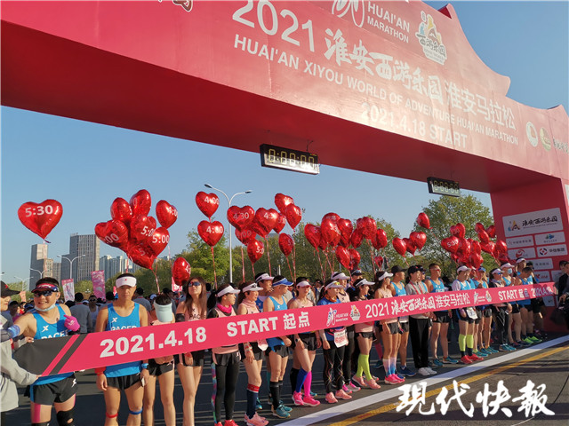 (記者 李子璇 文/攝)42.195公里“醉美”賽道令人心曠神怡,15000名各地跑友同場釋放運動激情,2200多年的運河古城煥發(fā)出時尚氣息與發(fā)展活力……4月18日7時30分,以“犇跑淮安,幸福平安”為主題,以“運河三千里,醉美是淮安”為口號的2021淮安西游樂園淮安馬拉松激情開跑。開跑前,萬人高唱國歌,起點附近人聲鼎沸,現(xiàn)場熱情四射,不斷傳來掌聲和吶喊聲。