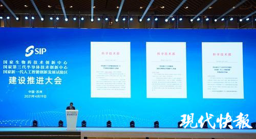 現(xiàn)場(chǎng),宣讀了科技部批復(fù),支持江蘇省、蘇州市以及工業(yè)園區(qū)建設(shè)“一區(qū)兩中心”即國家生物藥技術(shù)創(chuàng)新中心、國家第三代半導(dǎo)體技術(shù)創(chuàng)新中心、蘇州國家新一代人工智能創(chuàng)新發(fā)展試驗(yàn)區(qū)。