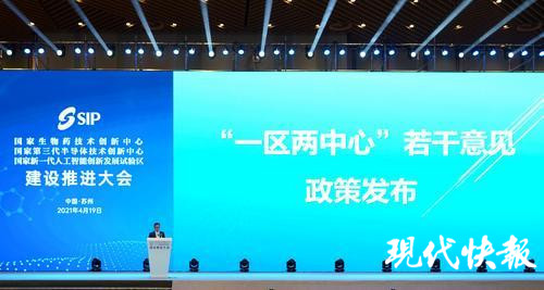 (記者 柴軍虎)4月19日,國家生物藥技術(shù)創(chuàng)新中心、國家第三代半導(dǎo)體技術(shù)創(chuàng)新中心、國家新一代人工智能創(chuàng)新發(fā)展試驗(yàn)區(qū)建設(shè)推進(jìn)大會(huì)在蘇州工業(yè)園區(qū)舉行?,F(xiàn)代快報(bào)記者了解到,蘇州市每年將統(tǒng)籌安排100億元支持“一區(qū)兩中心”重大載體平臺(tái)項(xiàng)目和人才,并設(shè)立直投資金、參股子資金,鼓勵(lì)金融機(jī)構(gòu)、社會(huì)資本包括央企一起來參與“一區(qū)兩中心”的建設(shè)。