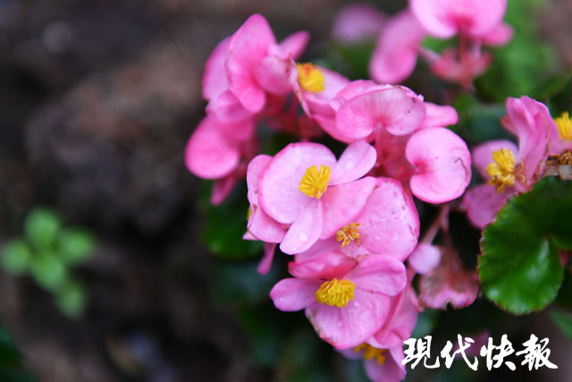 △4月25日,南京,路邊的花朵上落滿雨滴。