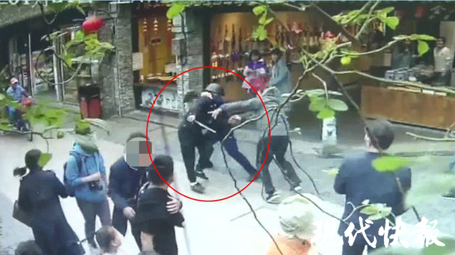 “警服男子”揚州東關街行兇 消防隊員一招制服