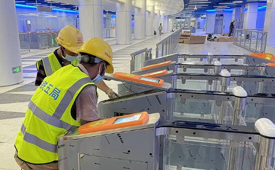 在魚嘴車站內(nèi),記者看到,工人們正加緊裝修施工,確保進(jìn)度?,F(xiàn)場(chǎng)工作人員告訴記者,魚嘴站是按照藝術(shù)站打造的,車站頂部是藍(lán)白色設(shè)計(jì),藍(lán)色代表海洋,白色代表帆船,還有龍形圖案的光影互動(dòng)設(shè)計(jì),車站內(nèi)的進(jìn)站閘機(jī)、電子顯示等設(shè)備都是較為先進(jìn)的,而且還有第三衛(wèi)生間、母嬰室等。