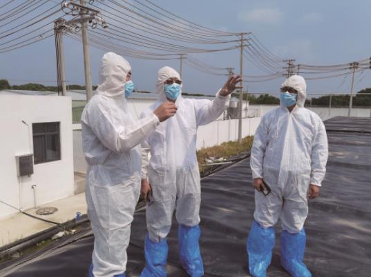 養(yǎng)殖區(qū)無遮無擋,防護服內(nèi)悶熱難耐,兩個人一待就是1個多小時,全面排查養(yǎng)殖場廢氣治理、污水排放等情況,并對養(yǎng)殖場廢氣收集不到位的問題提出了具體的整改要求。走出養(yǎng)殖區(qū),脫下防護服,兩人已經(jīng)渾身濕透。